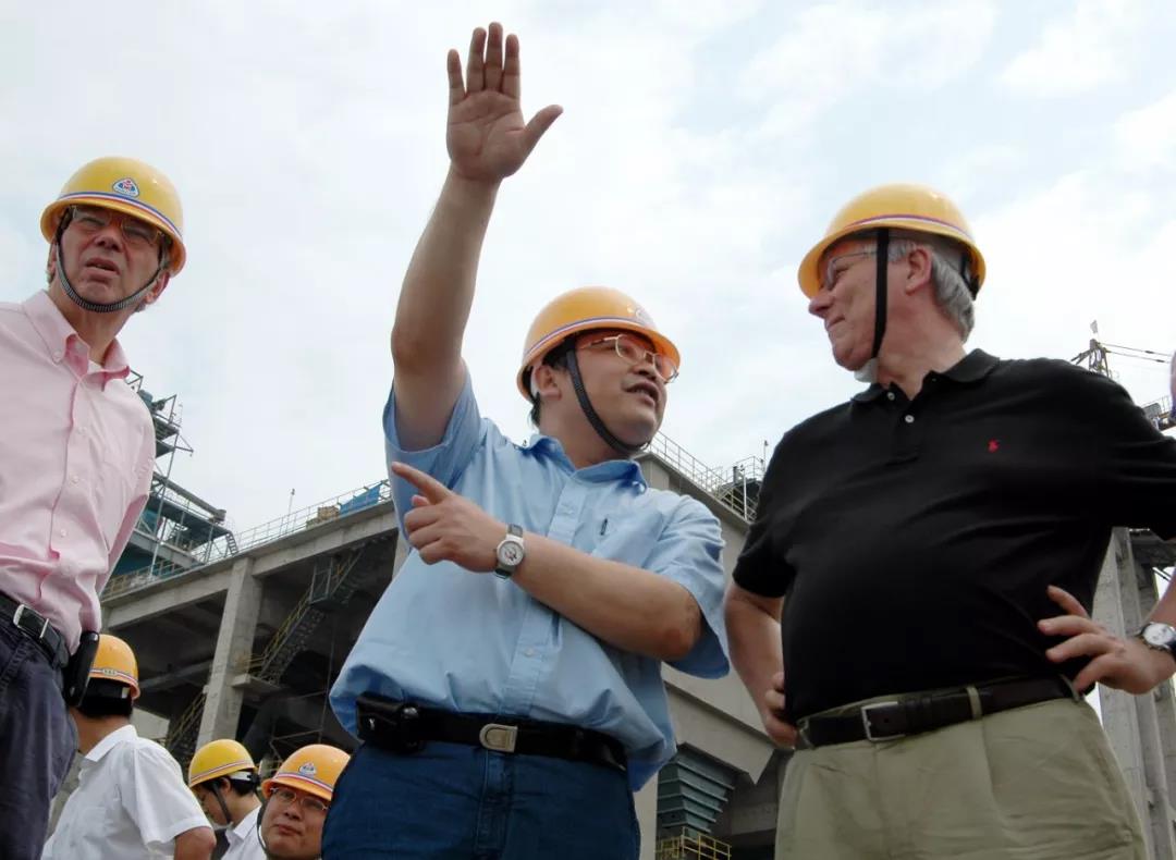 2005年7月9日,李葉青陪同外方人員參觀華新水泥新建生產(chǎn)線