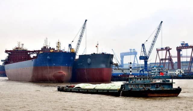 長江南京段江面上航行的船舶。攝影/章軻