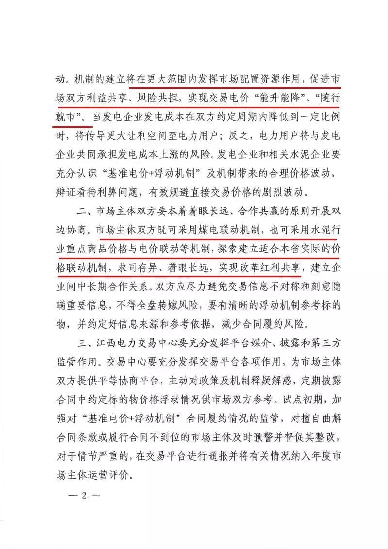 三、江西電力交易中心要充分發(fā)揮平臺媒介、披露和第三方監(jiān)管作用。交易中心要充分發(fā)揮交易平臺各項作用,為市場主體雙方提供平等協(xié)商平臺,主動對政策及機制釋疑解惑,定期披露合同中約定標的物價格浮動情況從市場雙方參考。試點初期,加強對"基準電價+浮動機制”合同履約情況的監(jiān)管,對擅自曲解合同條款或改造合同不到位的市場主體及時預警并督促其整改,對于情節(jié)嚴重的,在交易平臺進行通報并將有關(guān)情況納入年度市場運營評價。文件原文如下
