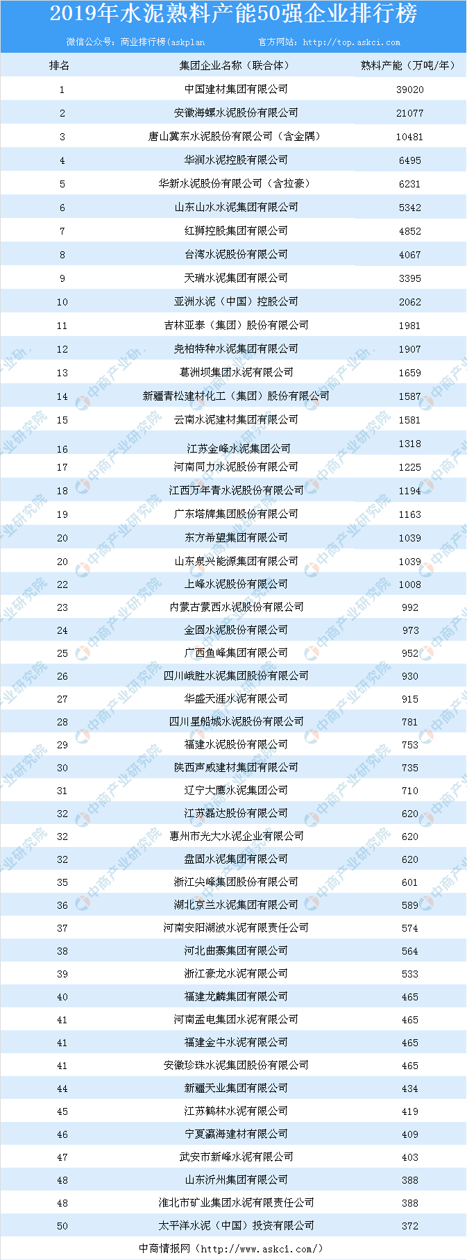 6.統(tǒng)計排名前后的企業(yè)之間熟料產(chǎn)能相差1%以內(nèi)的采取并列排名,并列不分前后。
