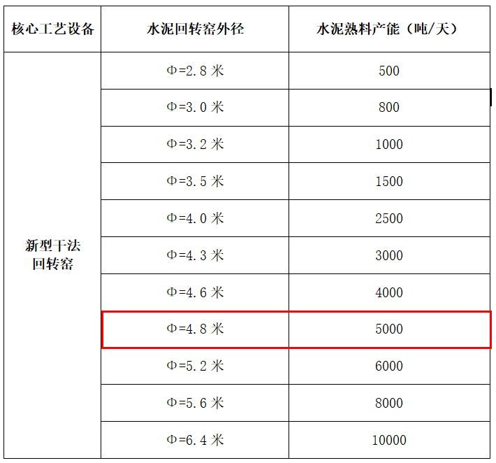 備注:1、對于變徑窯,按其最粗窯徑核定產(chǎn)能。2、窯徑在上表中兩檔之間的,按插值法推算其產(chǎn)能。