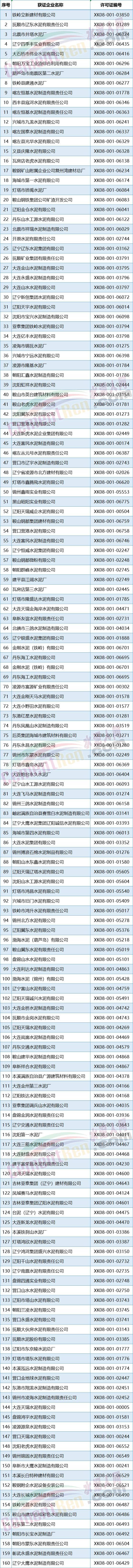 遼寧省部分水泥企業(yè)名單