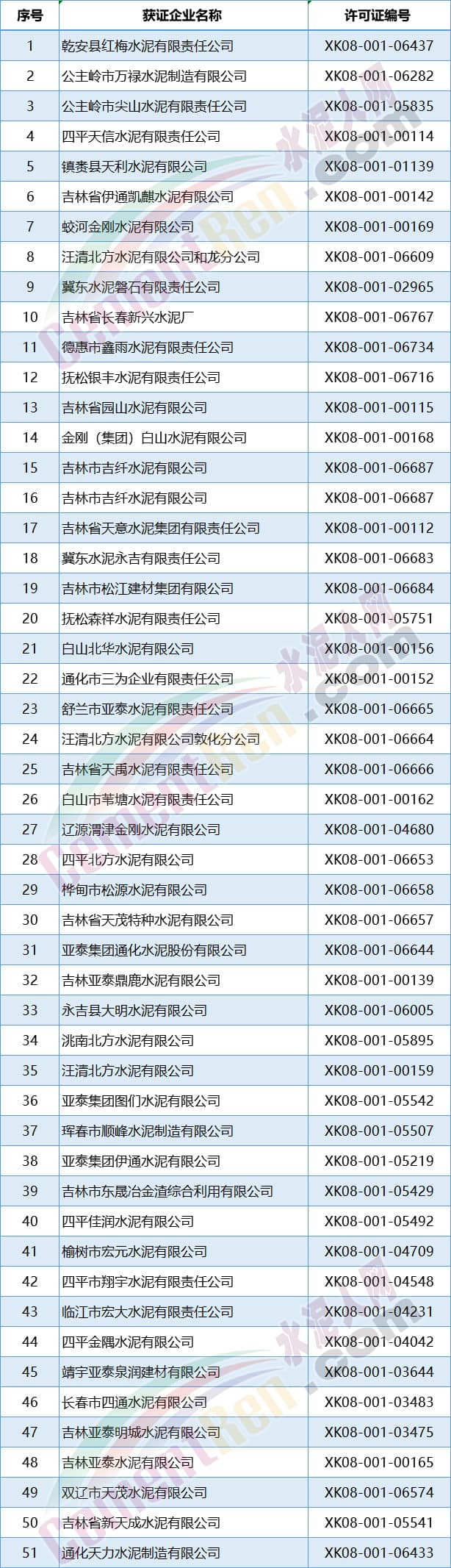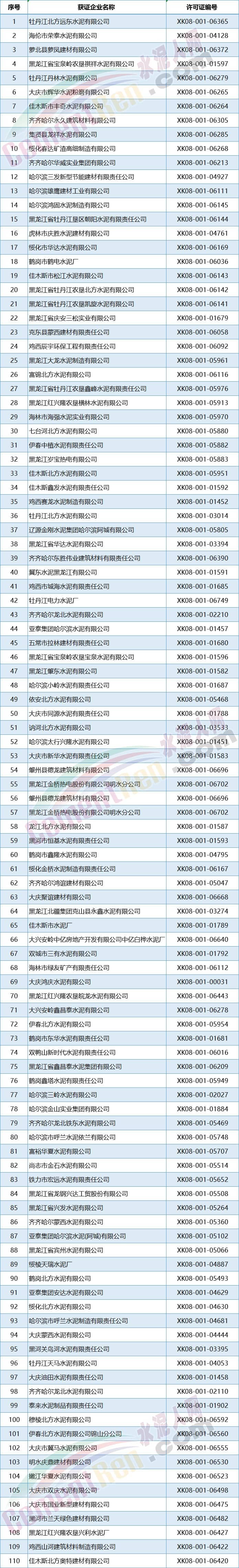 東北三省新發(fā)水泥企業(yè)生產(chǎn)許可證