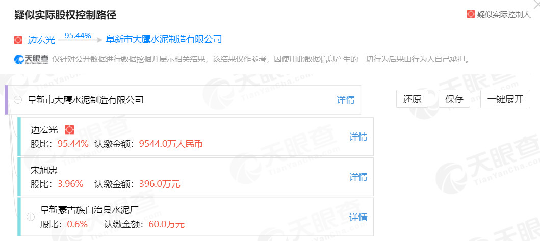 工商注冊(cè)信息顯示,阜新市大鷹水泥制造有限公司實(shí)際控制人為邊宏光。其在遼寧省內(nèi)還有投資入股多條熟料生產(chǎn)線。