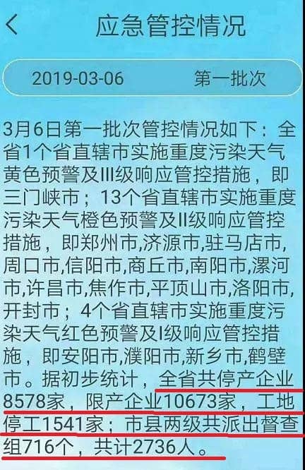 據(jù)初步統(tǒng)計(jì),河南全省共停產(chǎn)企業(yè)8578家,限產(chǎn)企業(yè)10673家,工地停工1541家;市縣兩級(jí)共派出督查組716個(gè),共計(jì)2736人。