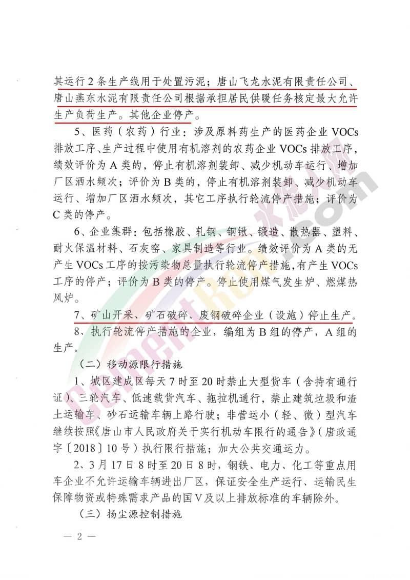 礦山開采、礦石破碎企業(yè)(設施)停止生產。執(zhí)行輪流停產措施的企業(yè),編組為B組的停產,A組的生產。