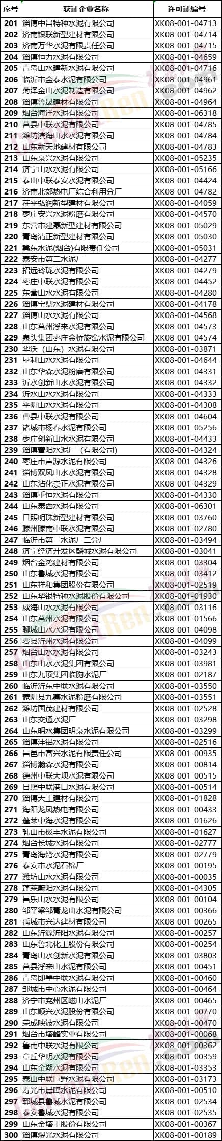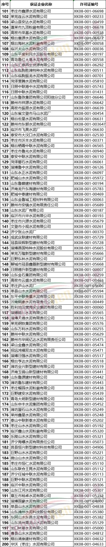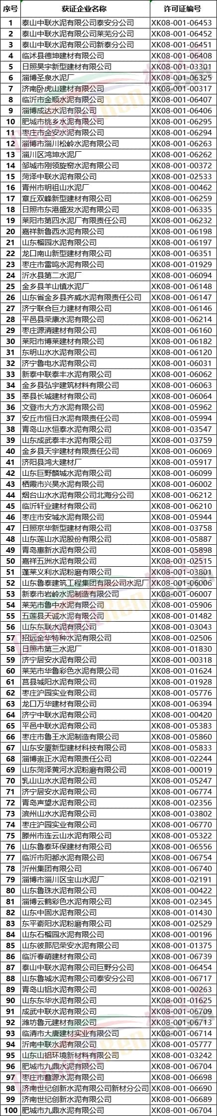 山東省水泥企業(yè)名單