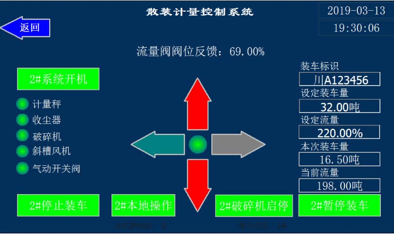 維鯨散裝控制系統(tǒng)采用集成控制、一鍵操作,操作人員可在較短時(shí)間內(nèi)實(shí)現(xiàn)對該系統(tǒng)的熟悉和應(yīng)用。該系統(tǒng)具有完整的數(shù)據(jù)處理和管理系統(tǒng),內(nèi)容包括散裝過程控制、實(shí)時(shí)散裝量監(jiān)控、散裝動態(tài)總量累計(jì)、裝車記錄、統(tǒng)計(jì)報(bào)告、報(bào)警記錄等,還可支持?jǐn)?shù)據(jù)上傳。
