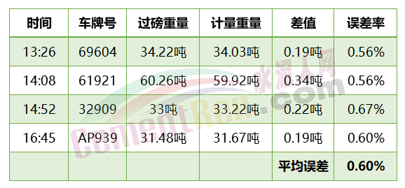 以上隨機(jī)抽取的車輛比對結(jié)果全部合格,且誤差較小,誤差全部小于<1%,平均誤差僅0.6%。
