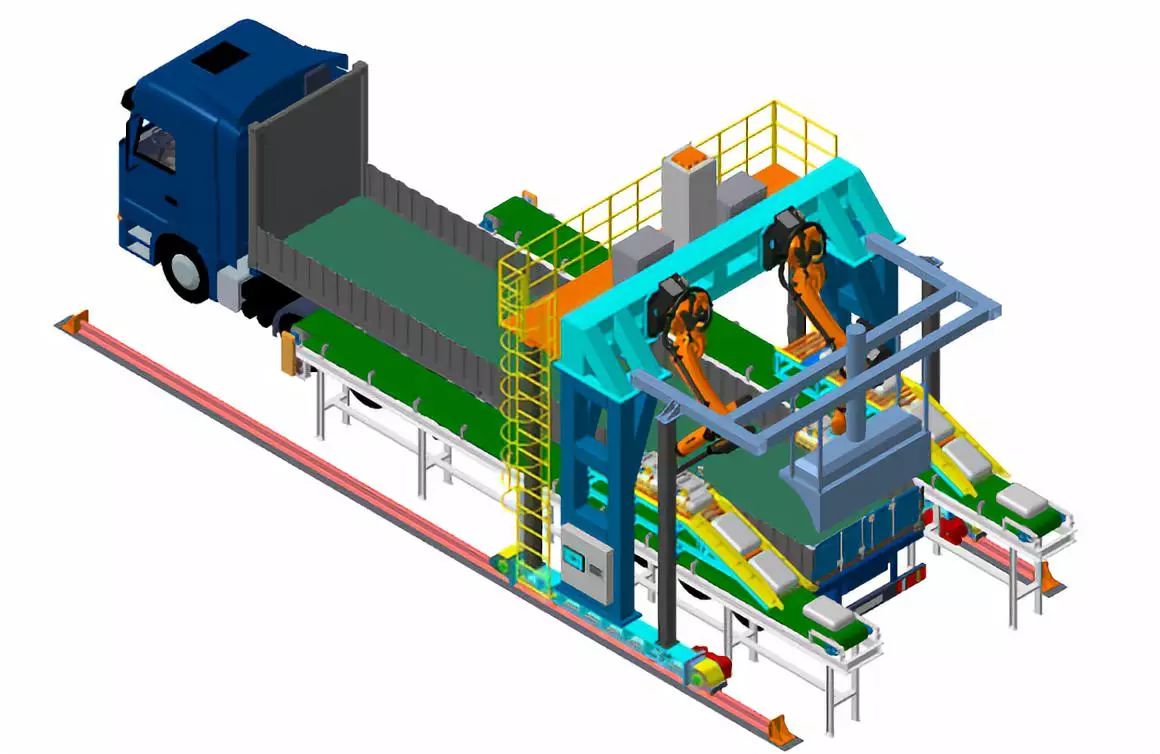 袋裝水泥智能裝車系統(tǒng),是一種適用于水泥廠袋裝水泥裝車環(huán)節(jié)的全自動(dòng)裝車系統(tǒng),它可以縮短裝車碼垛時(shí)間、降低勞動(dòng)強(qiáng)度、減少貨品損傷、降低裝車成本和提高工作效率,從而實(shí)現(xiàn)袋裝水泥裝車過程的自動(dòng)化。該系統(tǒng)在水泥行業(yè)中擁有廣泛的應(yīng)用前景,是現(xiàn)代化水泥企業(yè)降低勞動(dòng)生產(chǎn)成本、提高生產(chǎn)效率和實(shí)現(xiàn)智能化生產(chǎn)的重要節(jié)點(diǎn)。