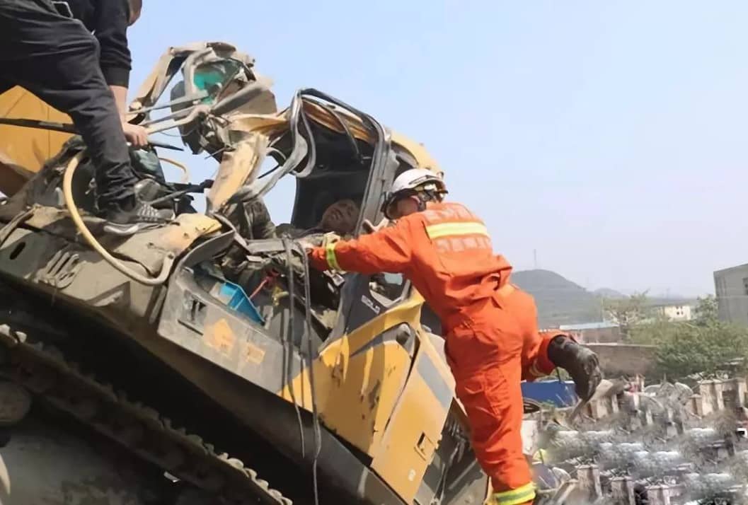事故原因是一名男性駕駛員正在駕駛挖掘機(jī)時(shí),一旁的貨車倒過來壓到了挖掘機(jī),駕駛員被貨車壓住無法動(dòng)彈,消防員到達(dá)現(xiàn)場后,現(xiàn)場群眾已經(jīng)用挖掘機(jī)將倒下的貨車?yán)嘶貋?,但由于挖掘機(jī)被貨車壓了一段時(shí)間,挖掘機(jī)駕駛員受傷后無法動(dòng)彈,嘴里一直發(fā)出痛苦的呻吟聲。