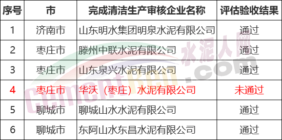 近日,山東省生態(tài)環(huán)境廳公布了2018年清潔生產(chǎn)審核評(píng)估驗(yàn)收情況,所列六家水泥企業(yè)中位于山東棗莊市的華沃(棗莊)水泥有限公司未通過(guò)評(píng)估驗(yàn)收,需要重新開(kāi)展清潔生產(chǎn)審核。