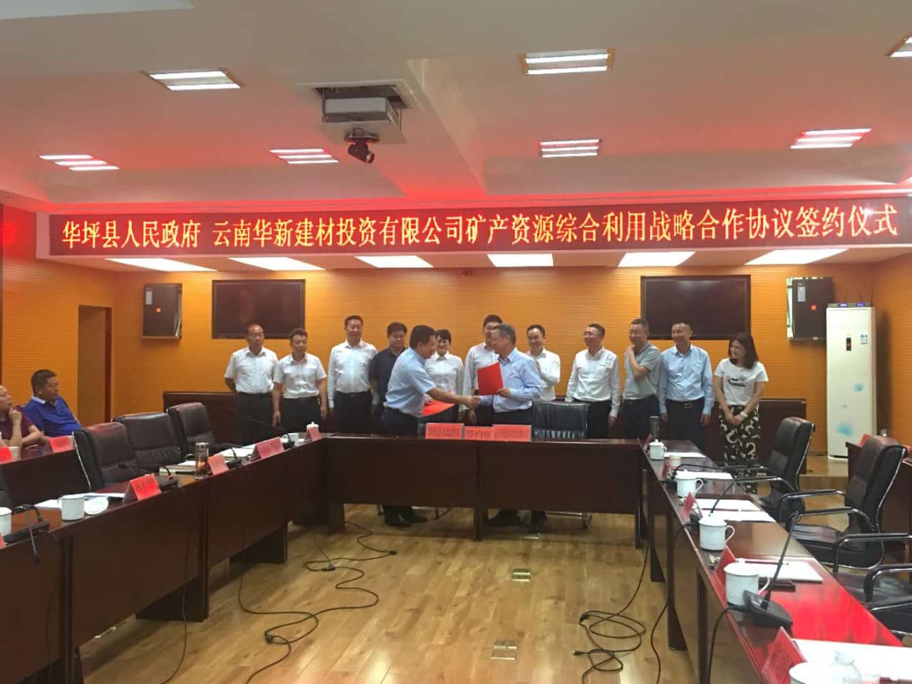 云南事業(yè)部工業(yè)總監(jiān)胡利民與華坪副縣長李升貴,代表華新云南事業(yè)部與華坪縣人民政府簽署《礦產(chǎn)資源綜合利用戰(zhàn)略合作協(xié)議》,工業(yè)副總監(jiān)暨麗江公司總經(jīng)理宋培仁代表麗江公司與華坪縣中昊礦產(chǎn)資源開發(fā)服務有限責任公司簽訂《合資協(xié)議書》,華新云南事業(yè)部、新業(yè)務事業(yè)部、華坪縣有關領導均參加見證了本次簽約儀式。