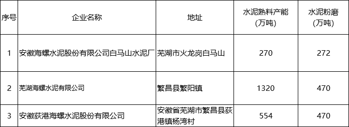 蕪湖市部分水泥生產(chǎn)企業(yè)名單