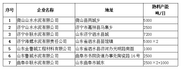 山東濟(jì)寧市水泥熟料生產(chǎn)企業(yè)