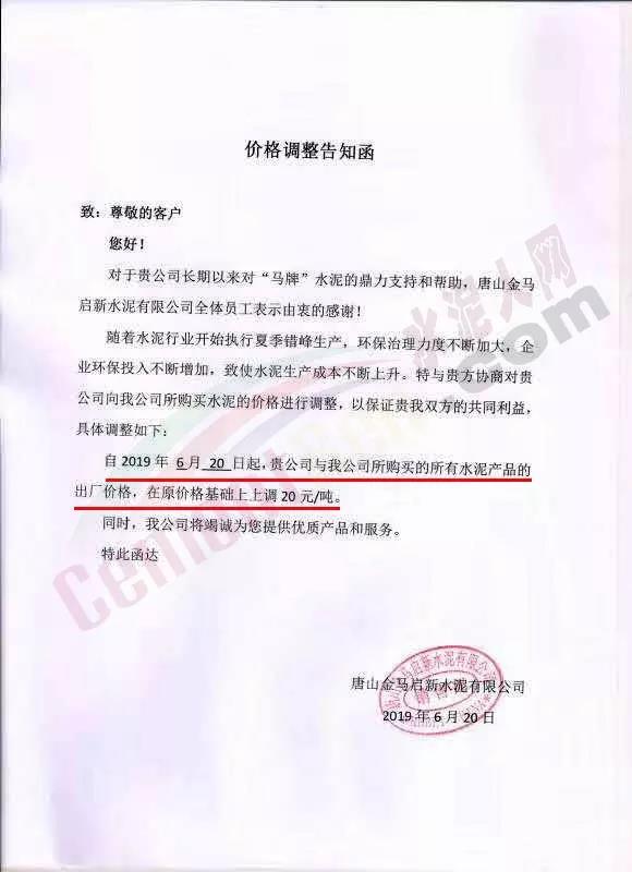 冀東水泥調(diào)價通知稱:隨著水泥行業(yè)開始執(zhí)行夏季錯峰生產(chǎn),環(huán)保治理力度不斷加大,企業(yè)環(huán)保投入不斷增加,致使水泥成本不斷提高。特與客戶協(xié)商對其購買水泥的出廠價格進行調(diào)整,以保證雙方共同利益。自6月21日8時起,在唐山地區(qū)購買的各品種水泥出廠價在原價格基礎上上調(diào)20元/噸。
