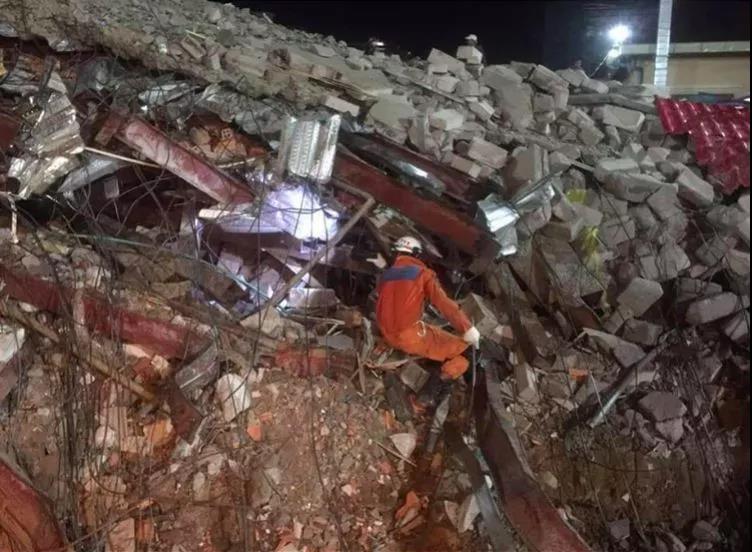 現(xiàn)場(chǎng)圖片顯示,戴著安全帽的救援人員穿過地面上的鋼筋水泥,將傷者運(yùn)送至救護(hù)車,同時(shí)挖掘機(jī)將倒塌后的建筑廢料分流到一邊。大量傷者的親屬則在事故地點(diǎn)附近等待消息。