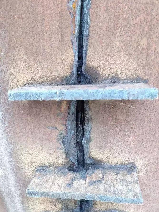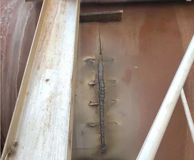 近年來,筒體開裂的情況多有發(fā)生,緊急處理通常是采用上述焊接的方法做修補(bǔ),以保證在較短的時間內(nèi)恢復(fù)窯運轉(zhuǎn)。通常施工方會給出內(nèi)外同焊的施工方案,也就是從窯筒體的內(nèi)外兩側(cè)分別焊補(bǔ)。