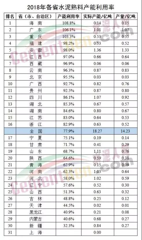 六年來(lái),隨著化解過(guò)剩產(chǎn)能工作的不斷推進(jìn),全國(guó)水泥熟料行業(yè)產(chǎn)能利用率已經(jīng)從2012年底的73.7%提高到2018年底的77.9%,水泥行業(yè)產(chǎn)能過(guò)剩問(wèn)題得到初步緩解。值得關(guān)注的是,目前國(guó)內(nèi)水泥產(chǎn)能利用率呈現(xiàn)明顯的南高北低態(tài)勢(shì)。一方面,北方多數(shù)省份的產(chǎn)能利用率依然沒(méi)能達(dá)到全國(guó)平均水平,新疆、黑龍江、內(nèi)蒙古等省份甚至低于50%;另一方面,南方大部分省份的產(chǎn)能利用率都保持在90%以上,區(qū)域性、結(jié)構(gòu)性矛盾仍十分突出。