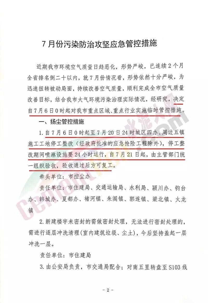 本次禹州市算是開創(chuàng)了水泥行業(yè),史無前例的除了停工停產(chǎn)之外,還要“停售”的大氣治理措施,近期會(huì)否延伸到整個(gè)河南省以及河北、山東等周邊地區(qū)還不得而知,但是此次河南禹州是開創(chuàng)了停產(chǎn)、停工、停售的一個(gè)先河。通知原文如下: