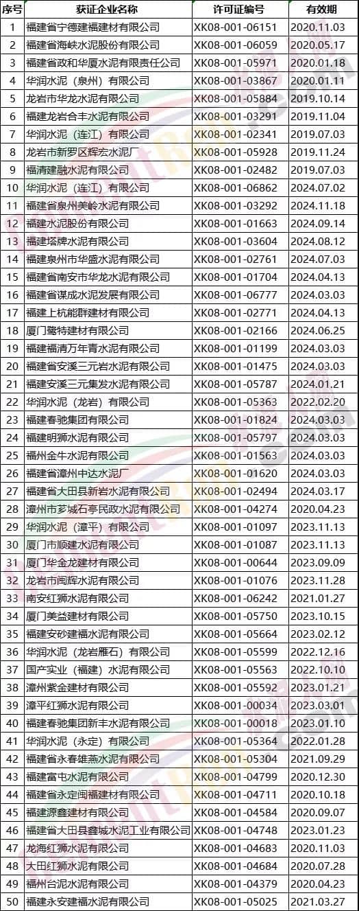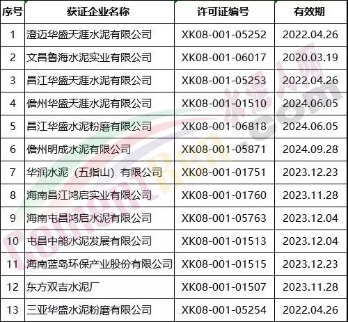 附上海、福建、海南、重慶、甘肅四省兩市220家水泥生產(chǎn)企業(yè)名單