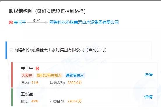 天眼查數(shù)據(jù)顯示:王獻(xiàn)金為阿魯科爾沁旗天山水泥集團(tuán)有限公司法定代表人,擁有企業(yè)49%的股份。同時擔(dān)任企業(yè)執(zhí)行董事和總經(jīng)理職務(wù)。