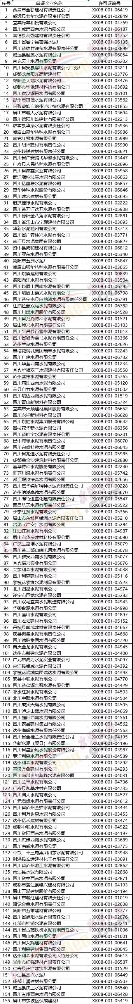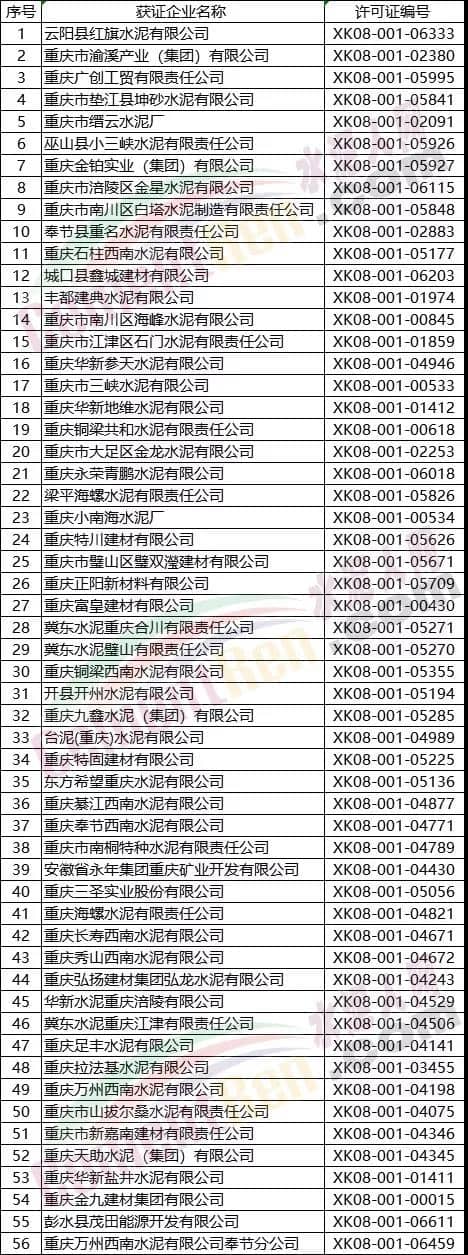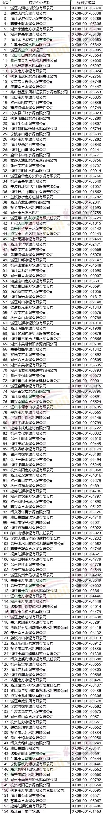 附浙江、江西、湖南、廣西、重慶、四川、貴州7省區(qū)市部分水泥企業(yè)名單如下: