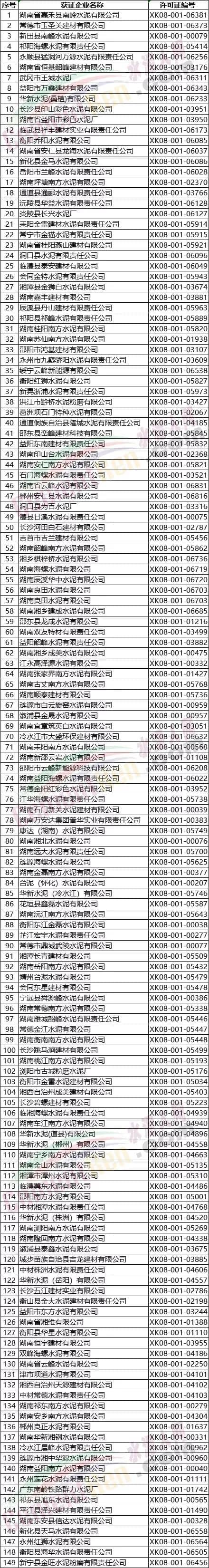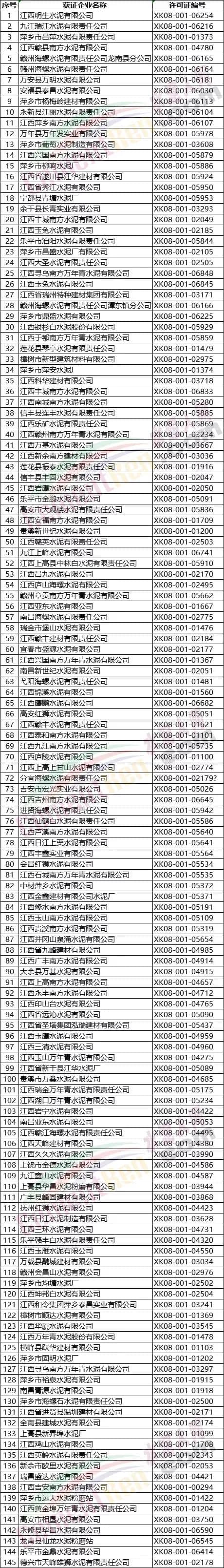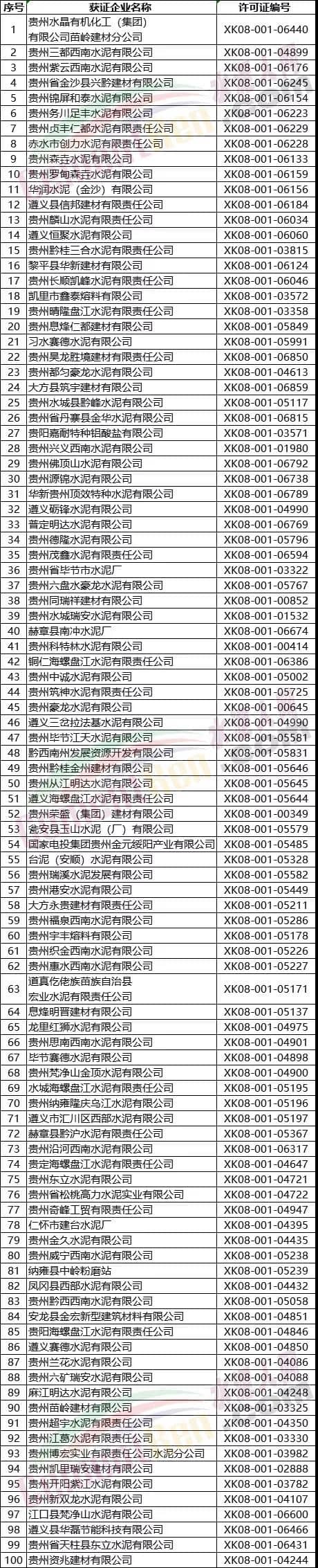 附浙江、江西、湖南、廣西、重慶、四川、貴州7省區(qū)市部分水泥企業(yè)名單如下: