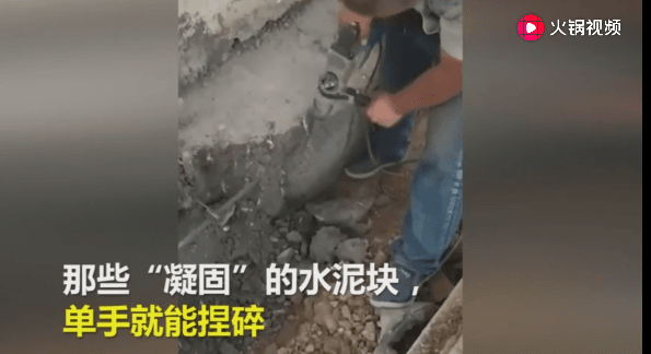 7月9日,鹿邑縣志成實驗學(xué)校校長張光啟對記者出示了工人清除問題水泥時的視頻。那些“凝固”的水泥塊,單手就能捏碎。為了把那些劣質(zhì)水泥清除干凈,“后期工人們是用手一塊一塊把水泥摳下來的”。