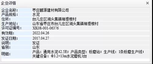 棗莊鵬源建材有限公司生產(chǎn)許可證信息