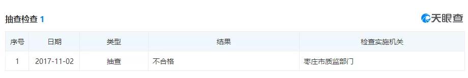 2017年11月棗莊市質(zhì)監(jiān)部門抽查結(jié)果為不合格