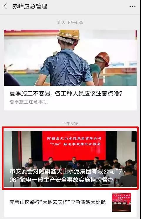 赤峰市安委會印發(fā)《關(guān)于對阿魯科爾沁旗鑫天山水泥集團有限公司“7.06”觸電一般生產(chǎn)安全事故查處進行掛牌督辦的通知》(赤安委會督〔2019〕1號),要求阿旗政府按照“四不放過”和“科學(xué)嚴謹、依法依規(guī)、實事求是、注重實效”的原則開展事故調(diào)查,查清事故發(fā)生的直接原因和間接原因,確定相關(guān)責(zé)任單位和責(zé)任人員的責(zé)任,提出事故防范措施,并要求事故調(diào)查報告經(jīng)市安委辦審核同意后方可批復(fù)結(jié)案。