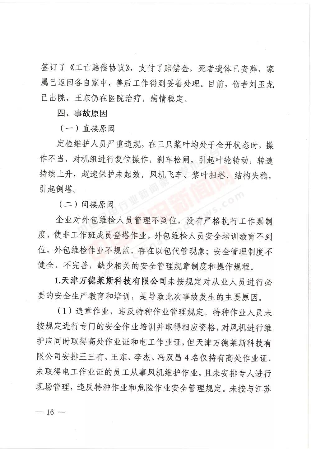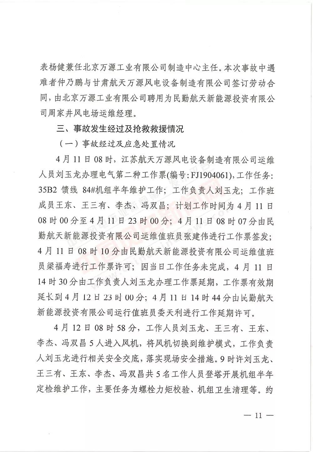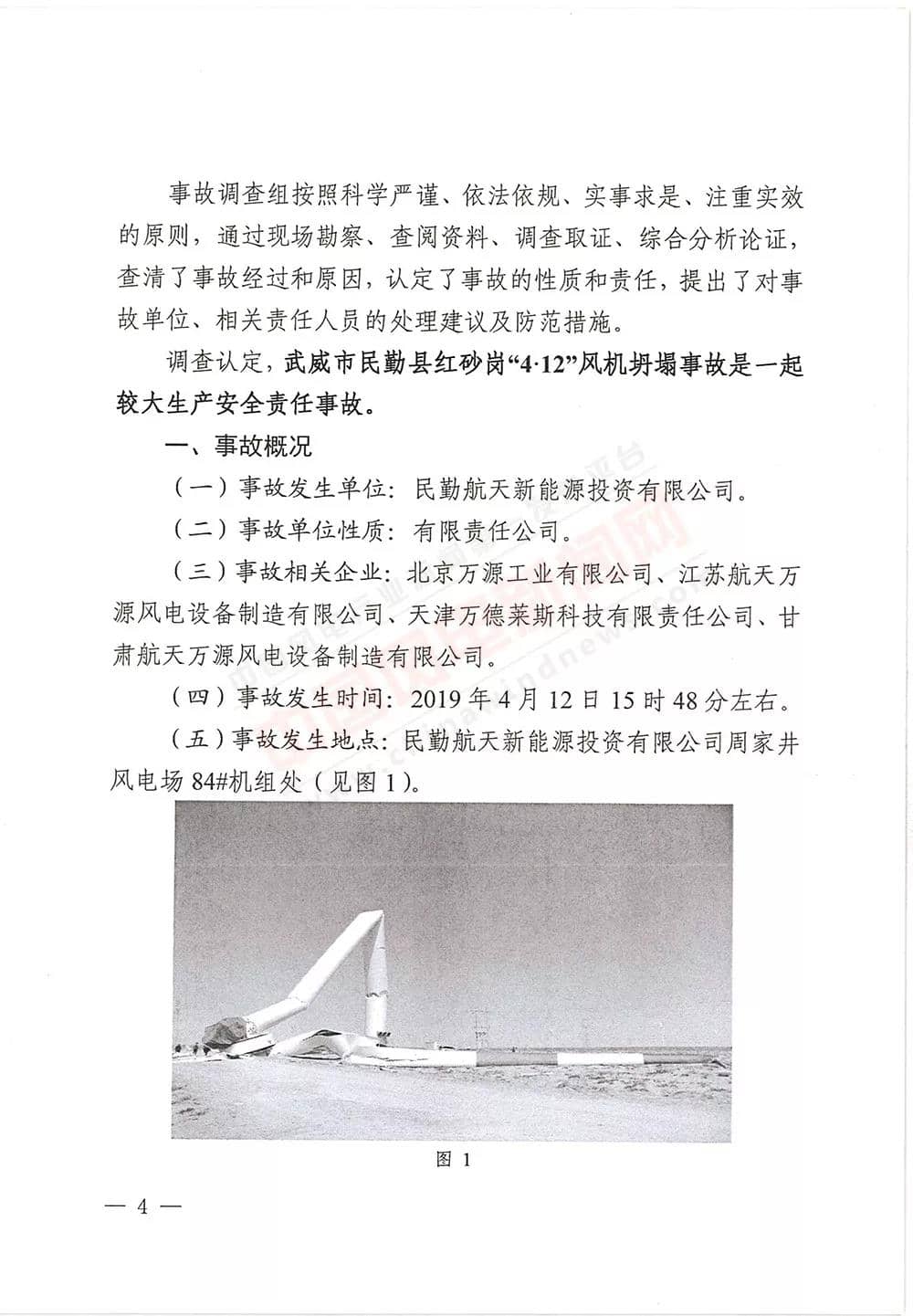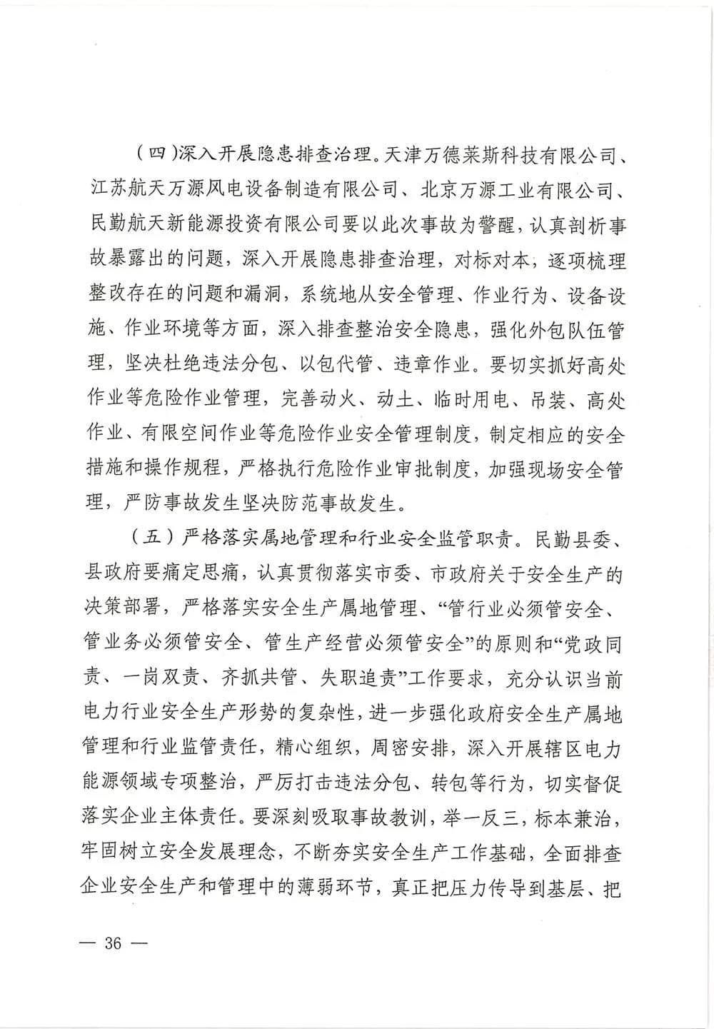 6月13日,甘肅省武威市人民政府批復《武威市民勤縣紅砂崗“4·12”風機坍塌事故調(diào)查報告》,同意事故調(diào)查組對事故原因分析、性質(zhì)認定、責任劃分以及提出的事故防范措施,準予結(jié)案。