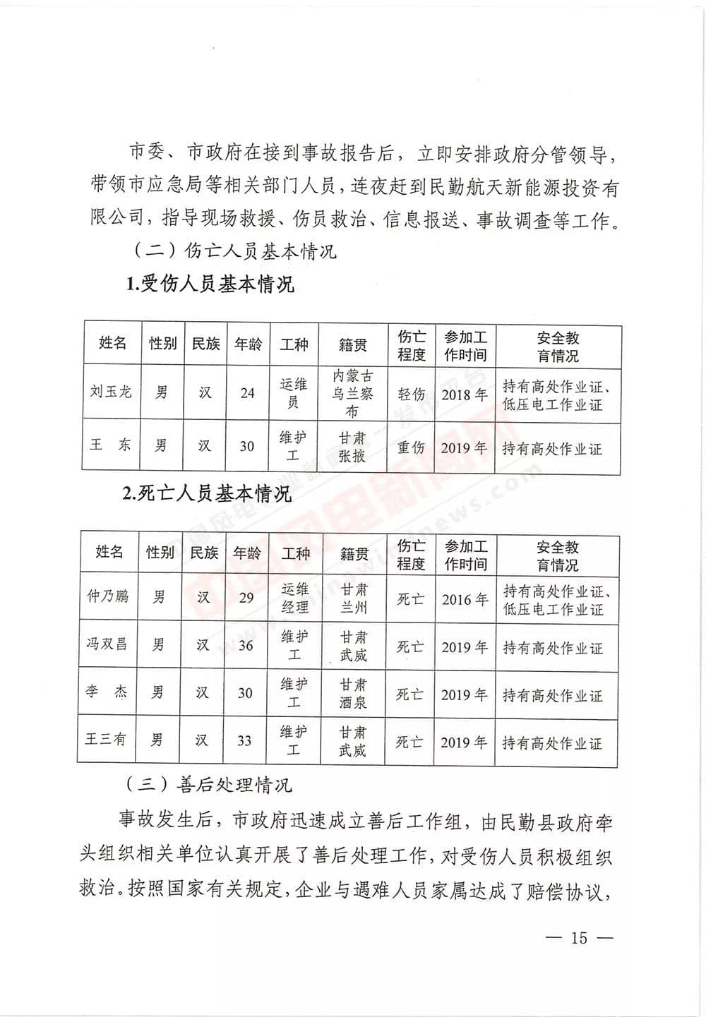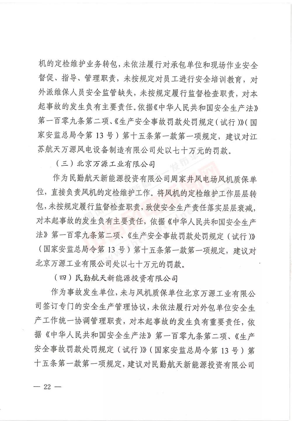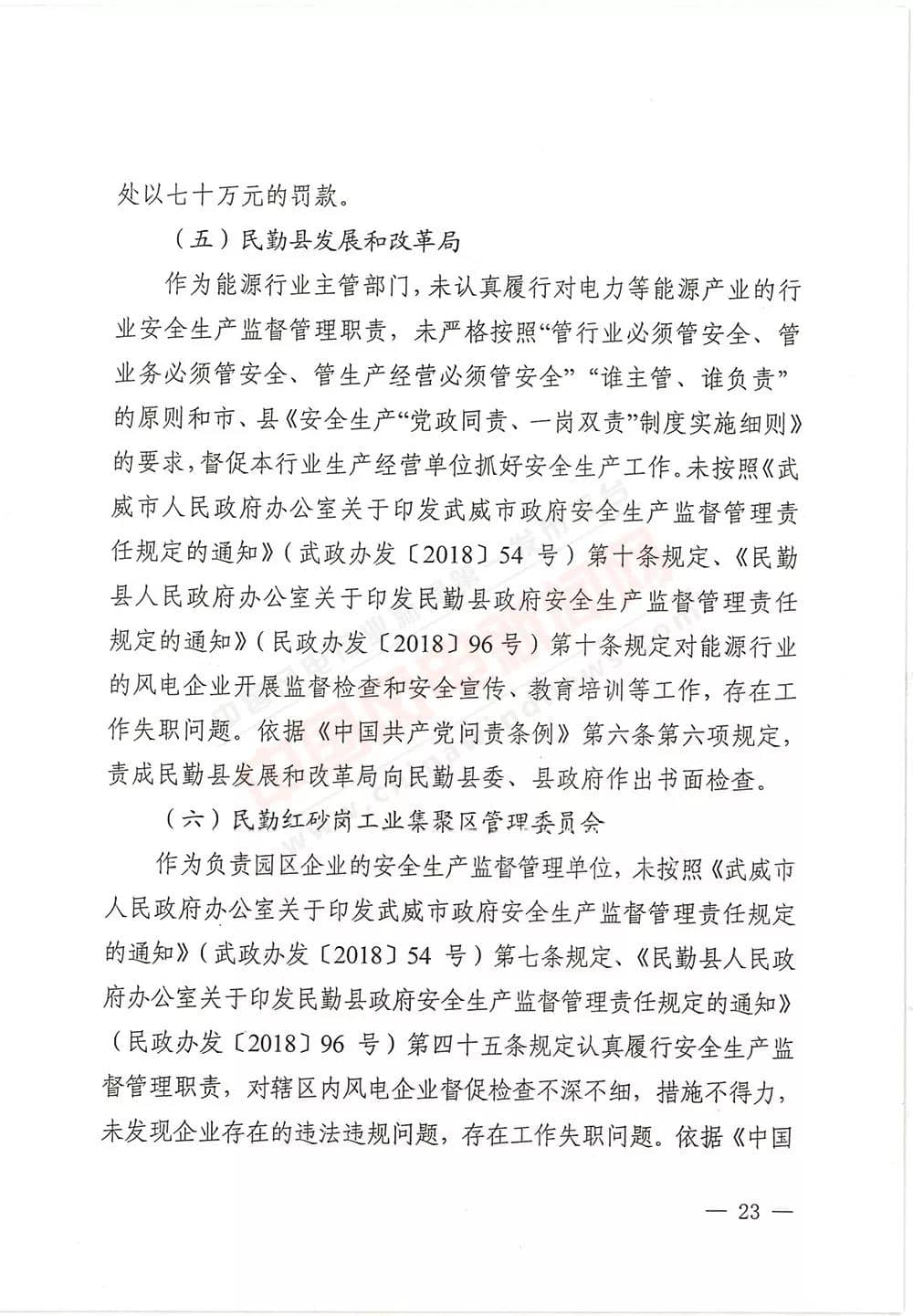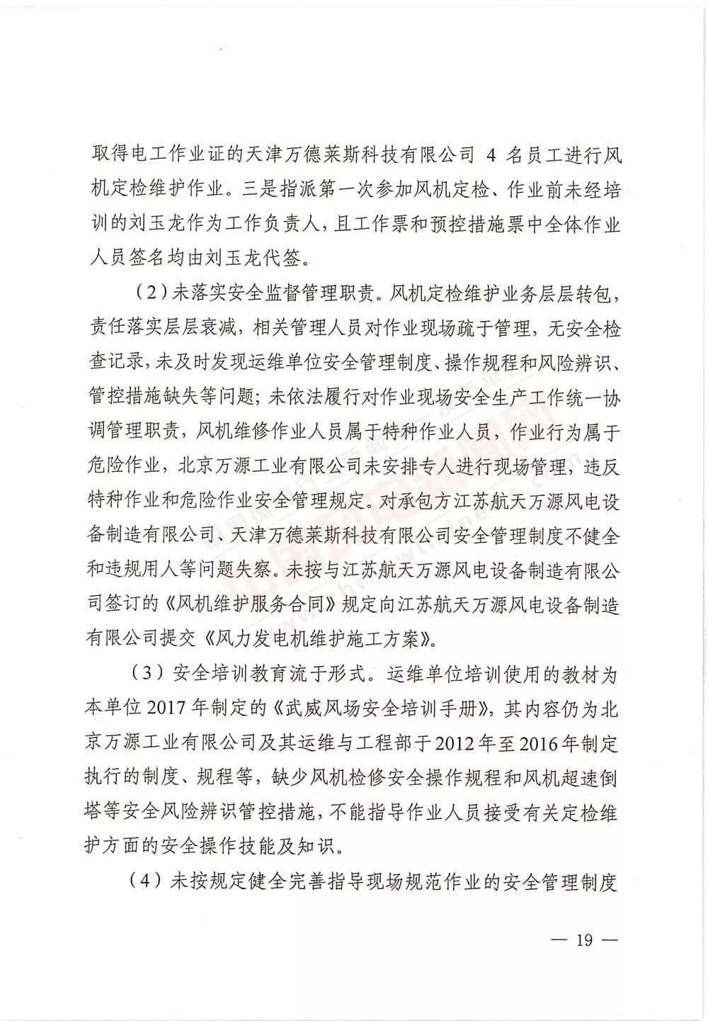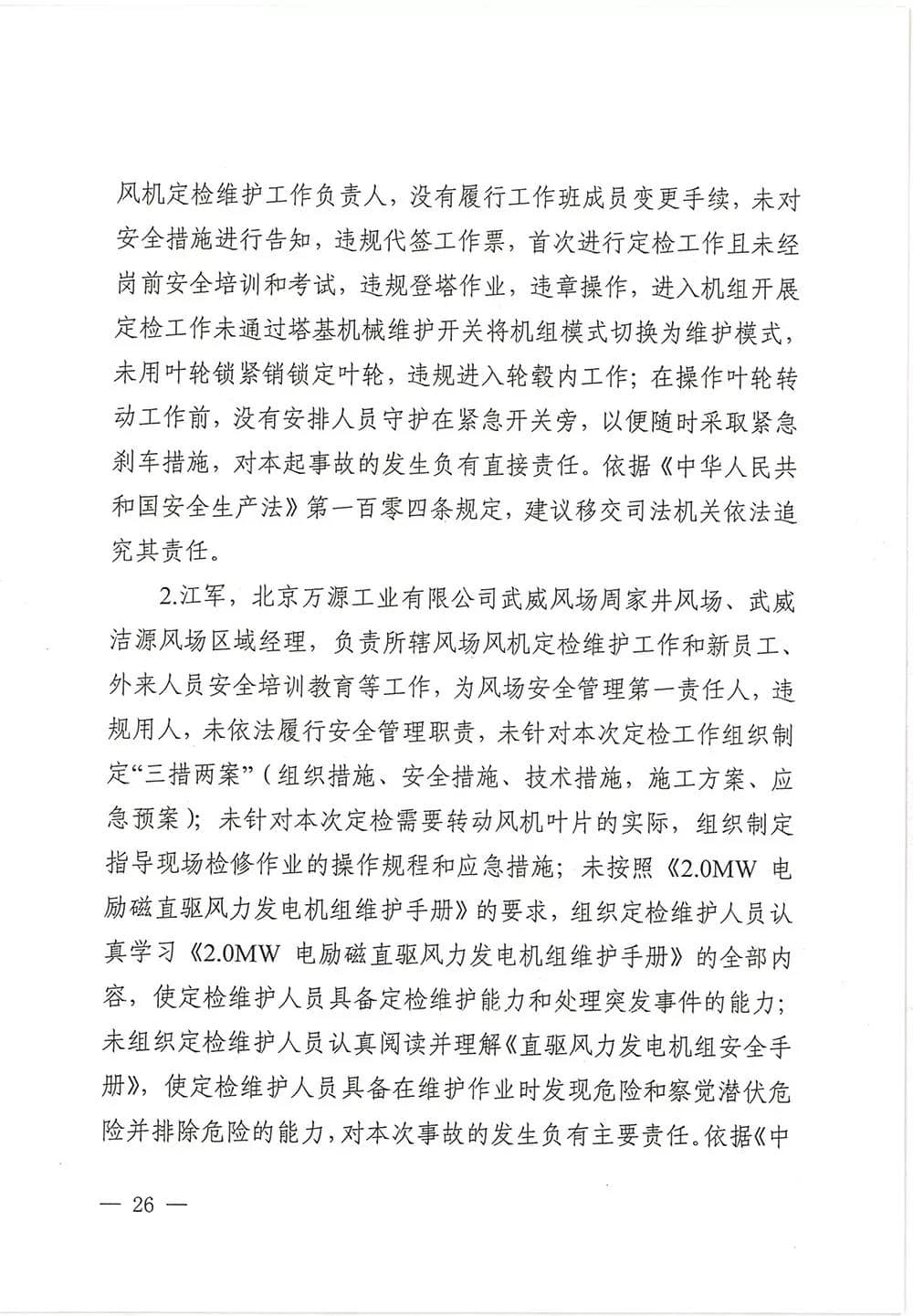 6月13日,甘肅省武威市人民政府批復《武威市民勤縣紅砂崗“4·12”風機坍塌事故調(diào)查報告》,同意事故調(diào)查組對事故原因分析、性質(zhì)認定、責任劃分以及提出的事故防范措施,準予結(jié)案。