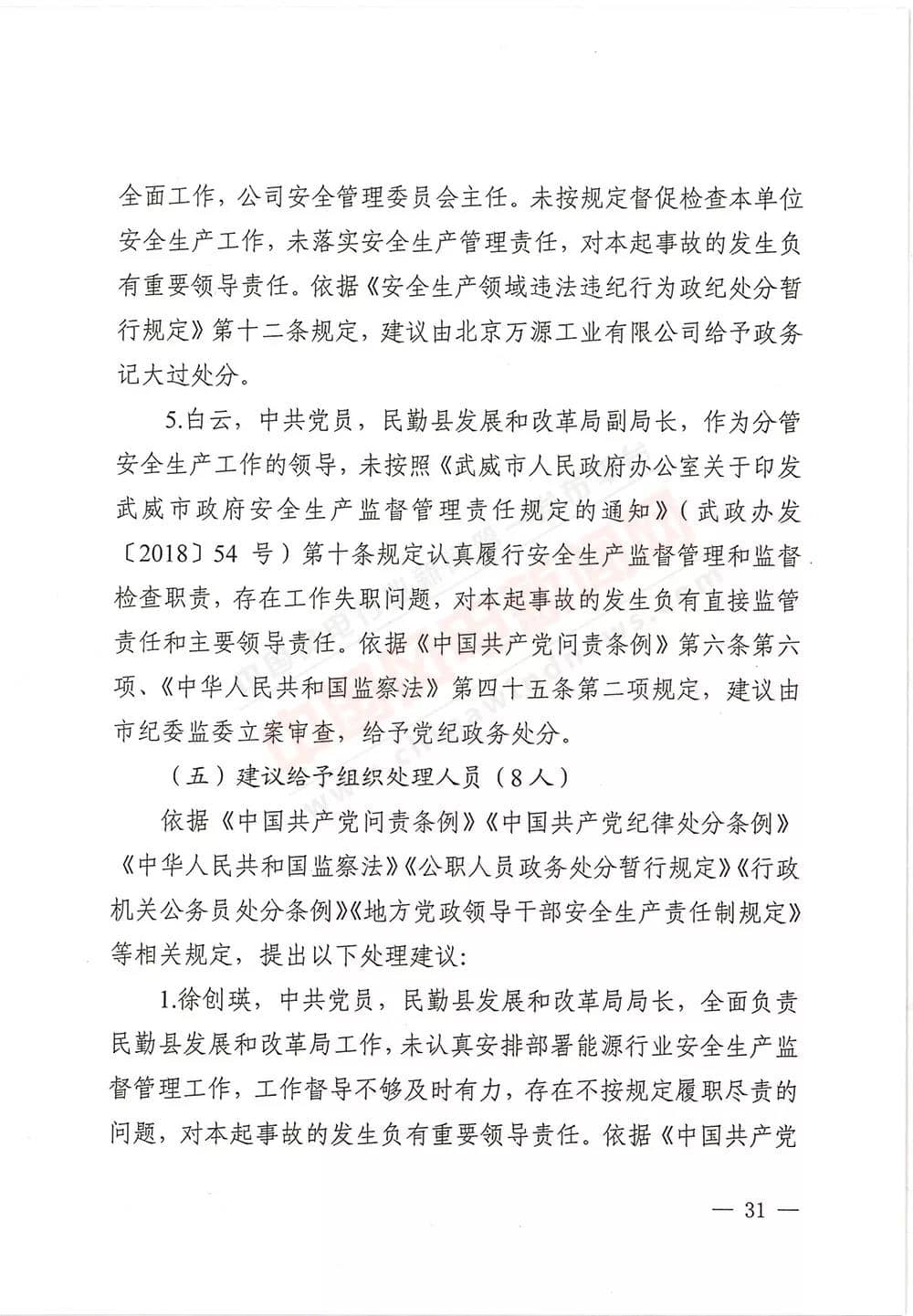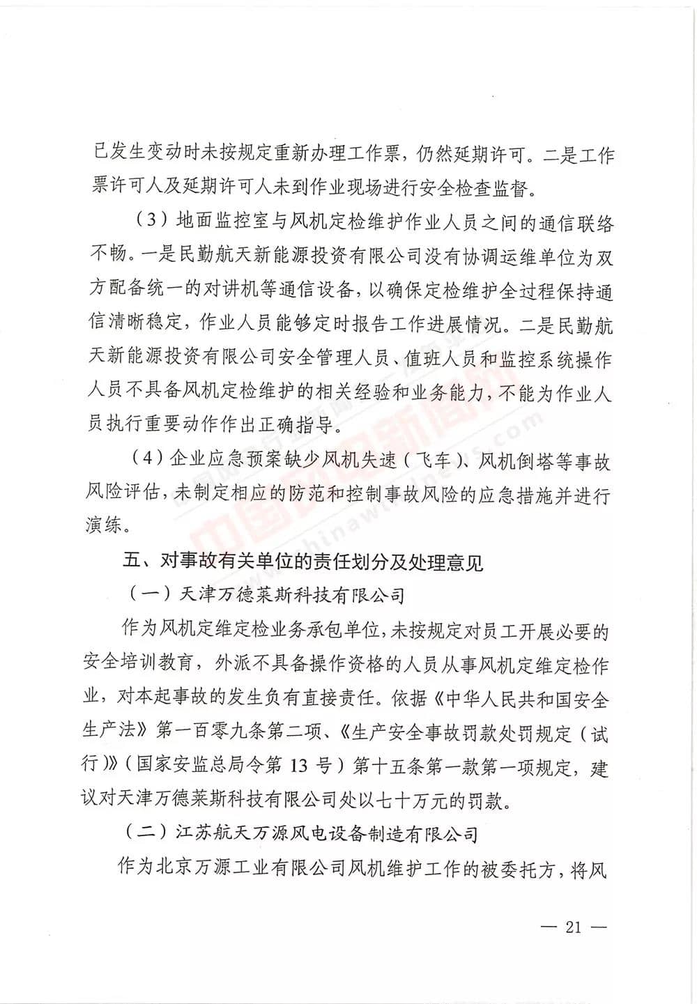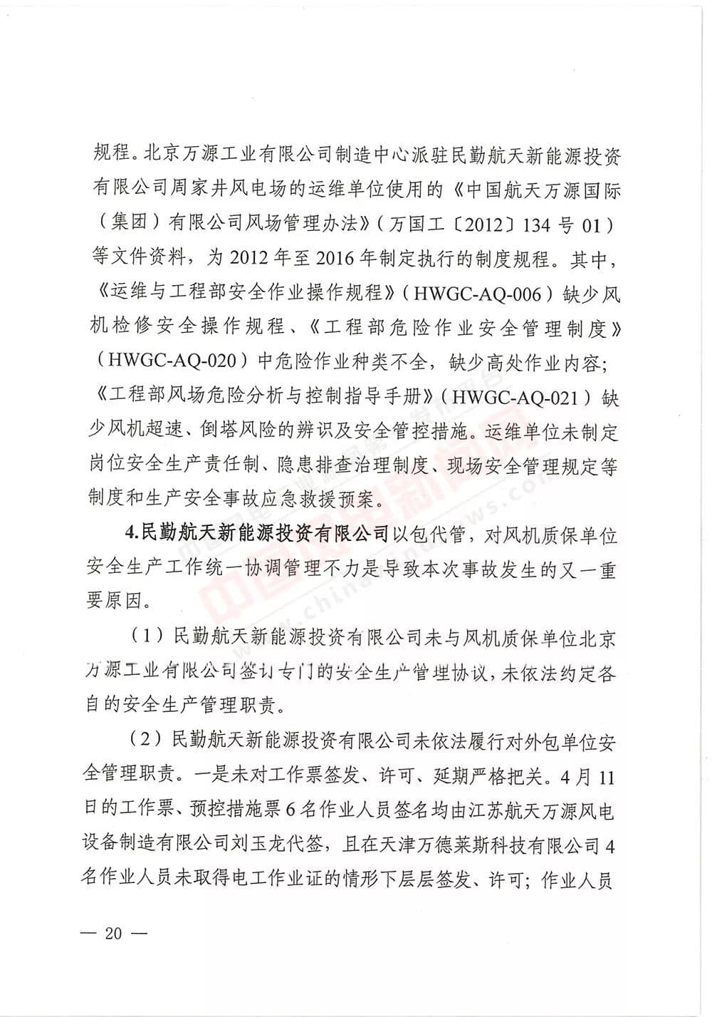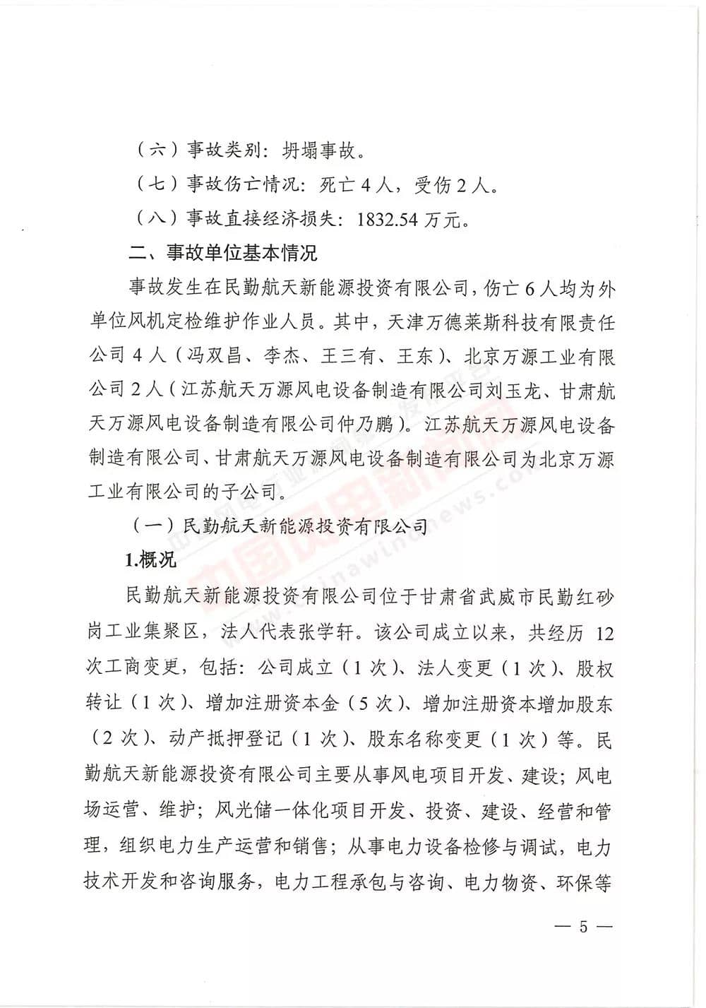 6月13日,甘肅省武威市人民政府批復《武威市民勤縣紅砂崗“4·12”風機坍塌事故調(diào)查報告》,同意事故調(diào)查組對事故原因分析、性質(zhì)認定、責任劃分以及提出的事故防范措施,準予結(jié)案。