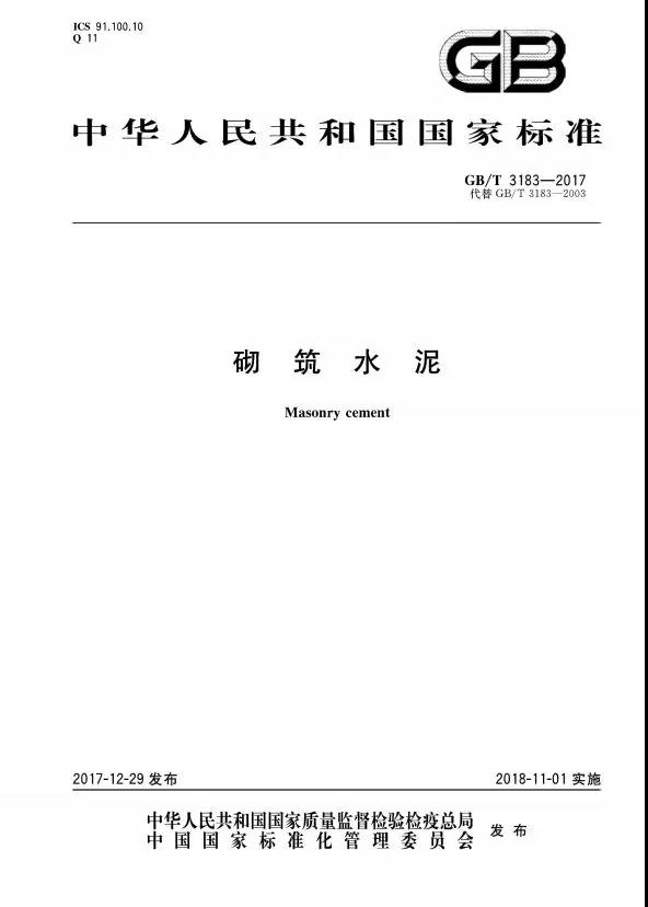 GB/T3183-2017《砌筑水泥》國家標(biāo)準(zhǔn)實施日期為2018年11月1日,從其內(nèi)容來看,更象是全面取消GB175標(biāo)準(zhǔn)中的32.5標(biāo)號“打補(bǔ)丁”。