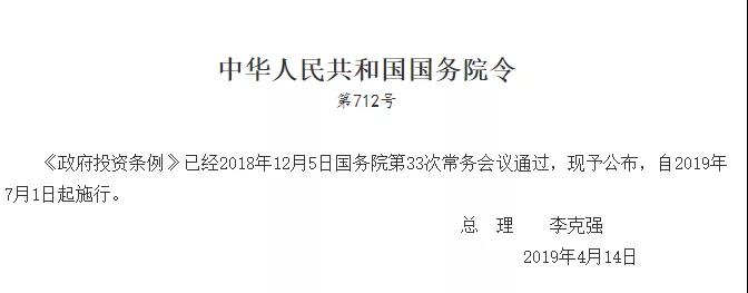 7月1日起施行《政府投資條例》