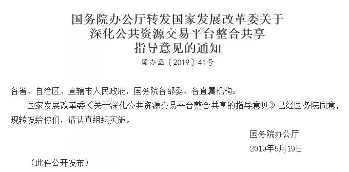 近日國務(wù)院辦公廳發(fā)布《國務(wù)院辦公廳轉(zhuǎn)發(fā)國家發(fā)展改革委關(guān)于 深化公共資源交易平臺整合共享指導(dǎo)意見的通知》(國辦函〔2019〕41號),通知明確提出:精簡管理事項(xiàng)和環(huán)節(jié)。系統(tǒng)梳理公共資源交易流程,取消沒有法律法規(guī)依據(jù)的投標(biāo)報(bào)名、招標(biāo)文件審查、原件核對等事項(xiàng)以及能夠采用告知承諾制和事中事后監(jiān)管解決的前置審批或?qū)徍谁h(huán)節(jié)。