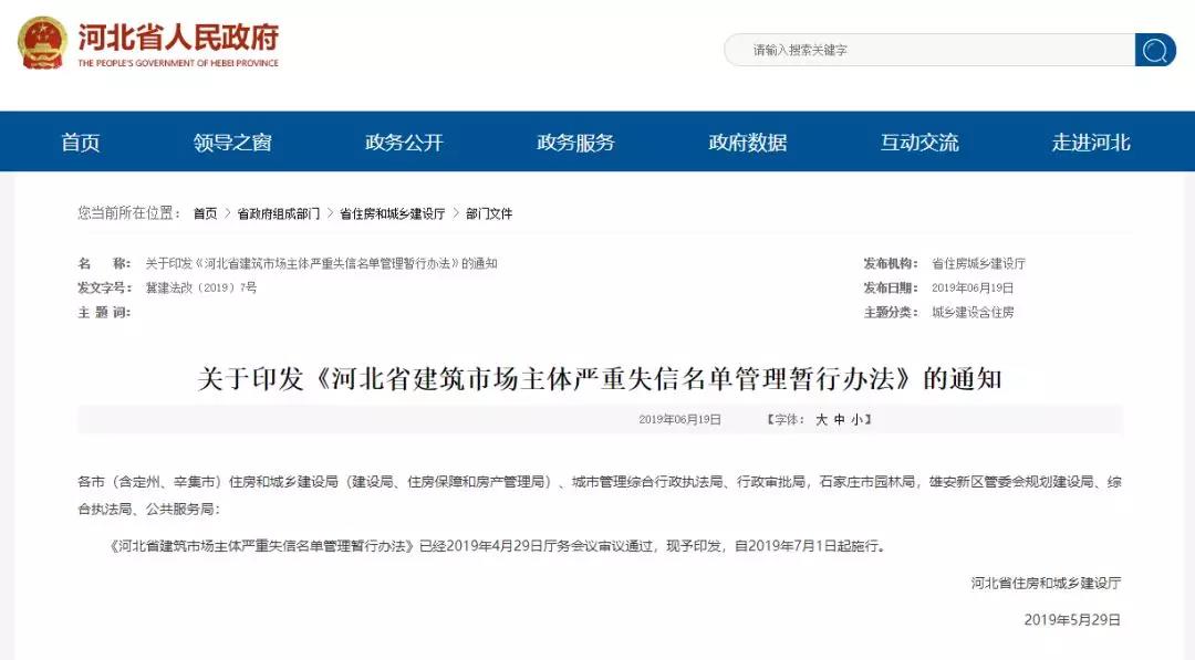7月1日起河北將施行《河北省建筑市場主體嚴(yán)重失信名單管理暫行辦法》