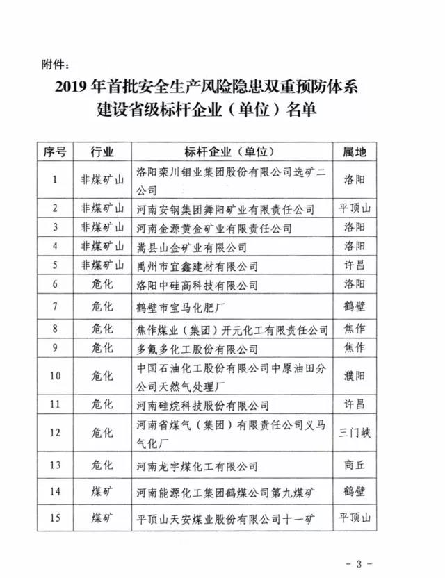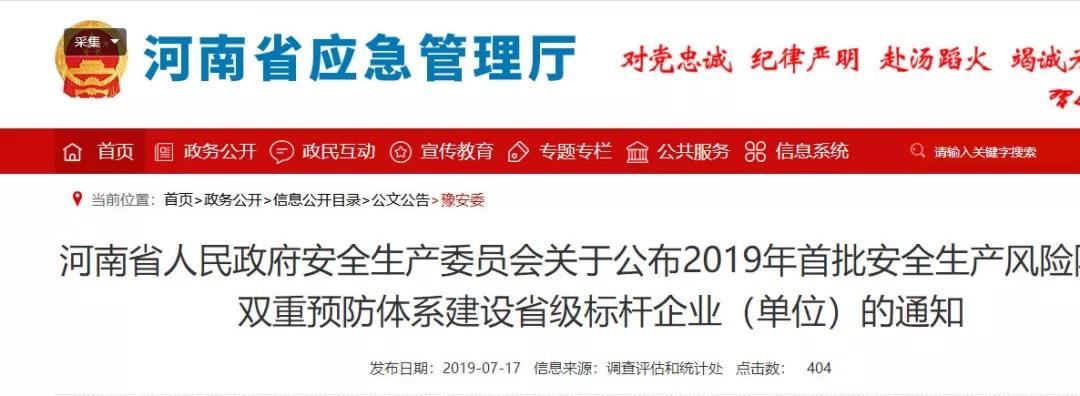 河南省應(yīng)急管理廳官網(wǎng)發(fā)布的豫安委【2019】7號文顯示,河南省煤氣集團(tuán)公司義馬氣化廠名列河南省“2019年首批安全生產(chǎn)風(fēng)險(xiǎn)隱患雙重預(yù)防體系建設(shè)省級標(biāo)桿企業(yè)”,是河南省內(nèi)72家企業(yè)(單位)之一。文件發(fā)布日期為今年7月9日。