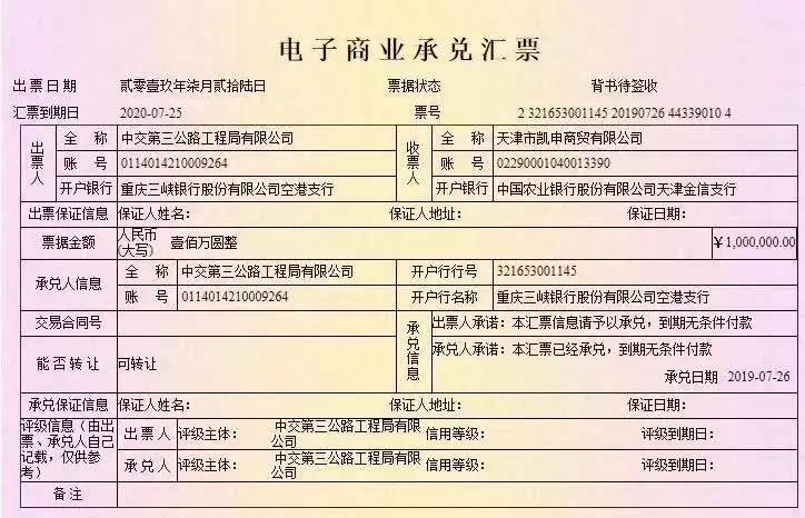 近日,票據(jù)市場上出現(xiàn)了重慶三峽銀行股份有限公司空港支行以中交第三公路工程局有限公司名義出具的電子商業(yè)承兌匯票,重慶三峽銀行股份有限公司空港支行不是中交第三公路工程局有限公司的合作銀行,該商業(yè)承兌匯票不是中交第三公路工程局有限公司出具,請各機構(gòu)、社會公眾注意識別,以免造成損失。