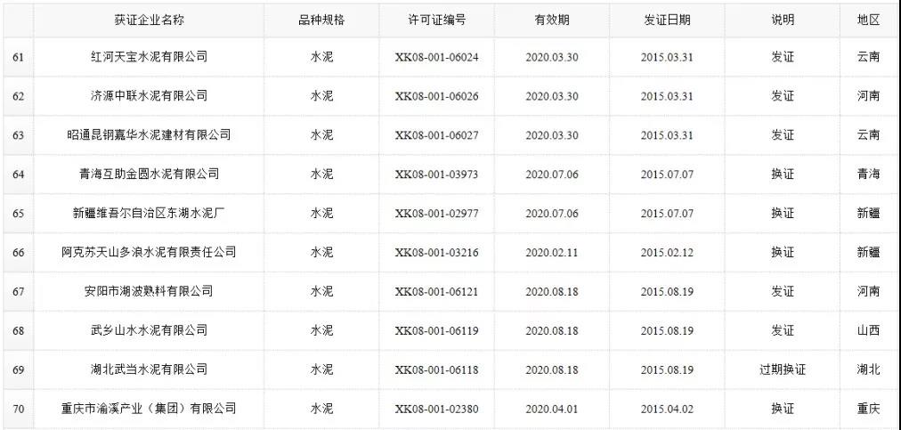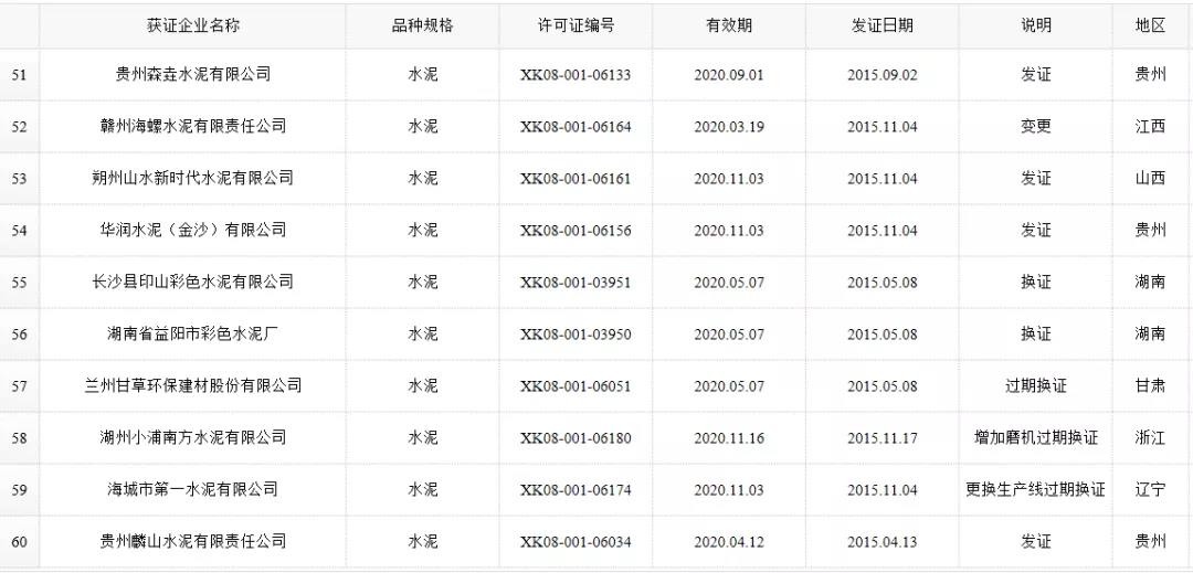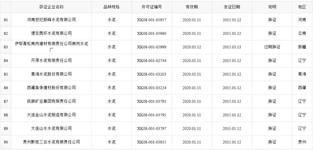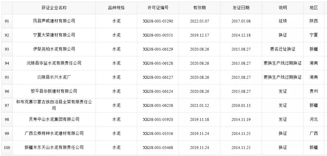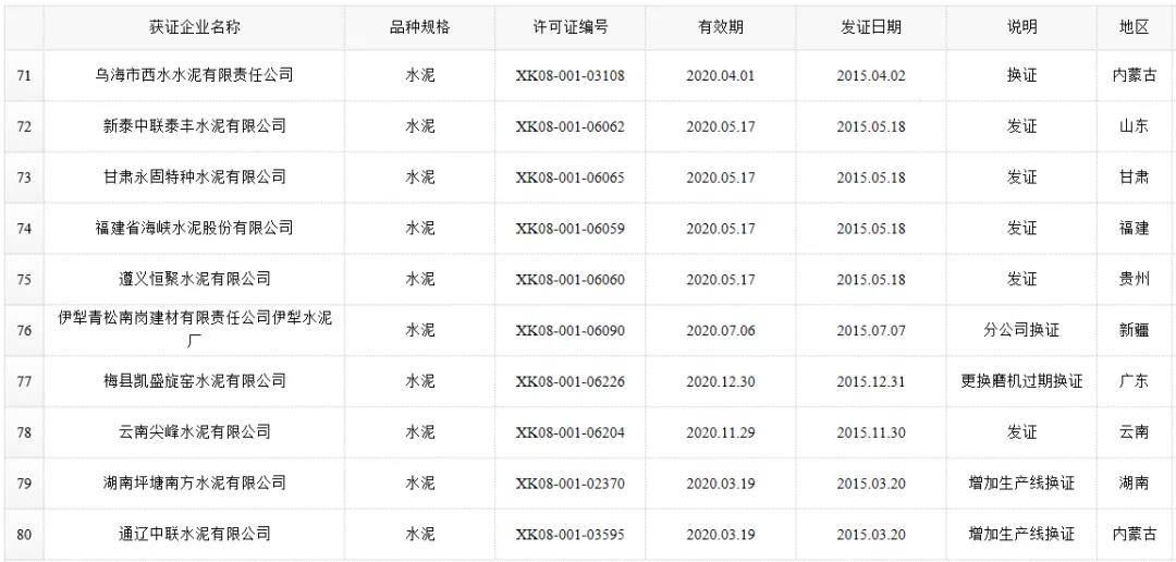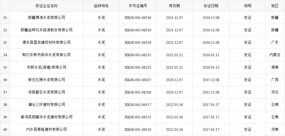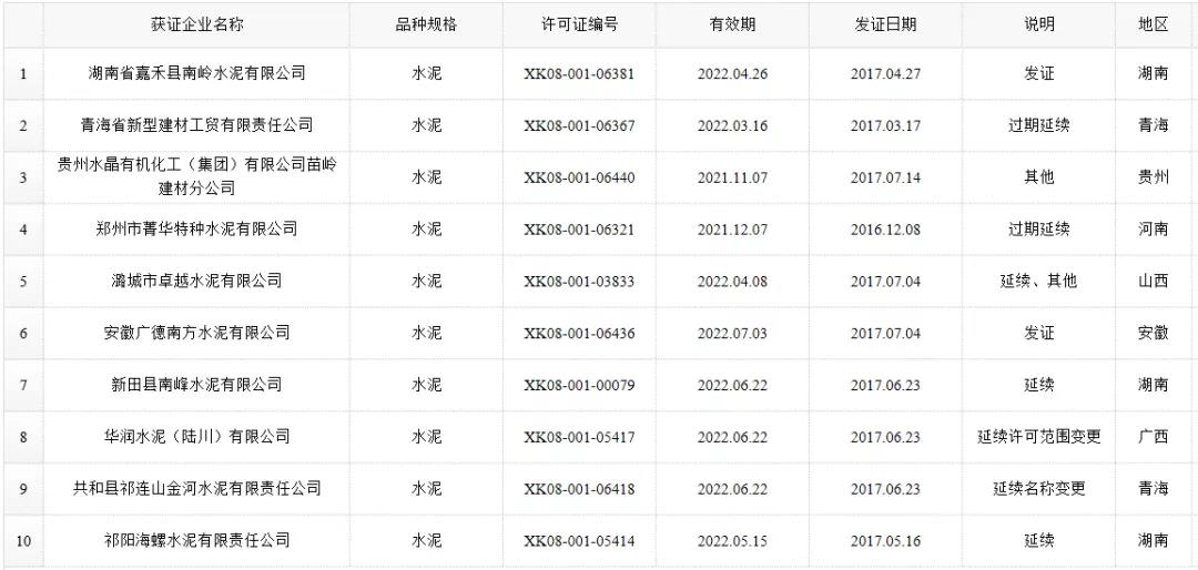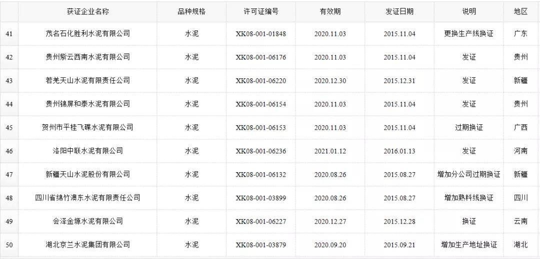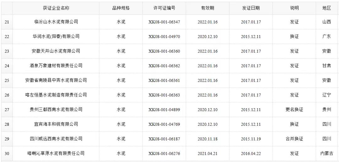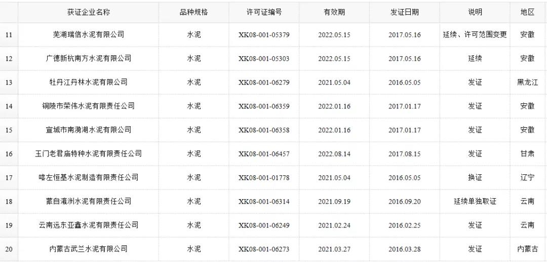 數(shù)據(jù)來源:市場監(jiān)管總局生產(chǎn)許可證辦公室,因篇幅有限僅列出部分熟料生產(chǎn)線名單。
