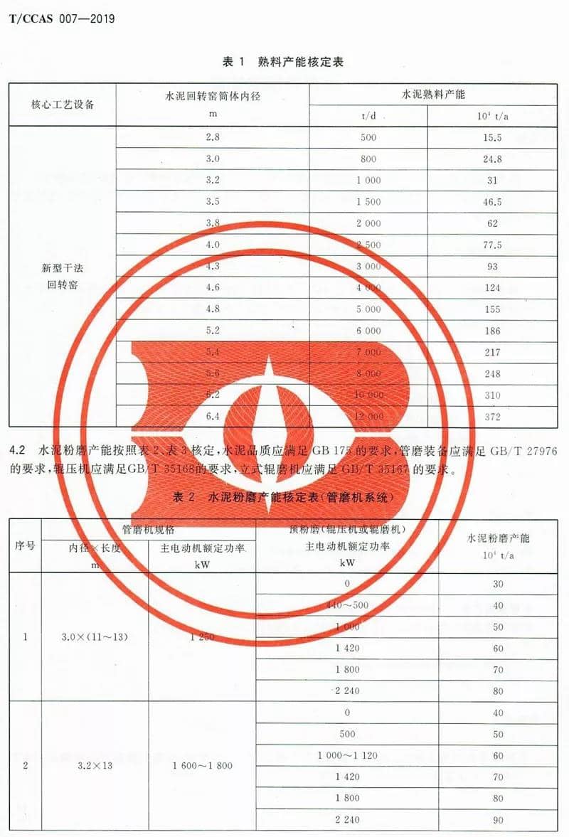 附水泥協(xié)會水泥產(chǎn)能核實標準(T/CCAS007-2019) 部分截圖