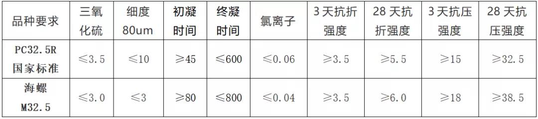 浙江區(qū)域海螺水泥M32.5水泥內(nèi)控標(biāo)準(zhǔn)與P.C32.5R國家標(biāo)準(zhǔn)要求對比