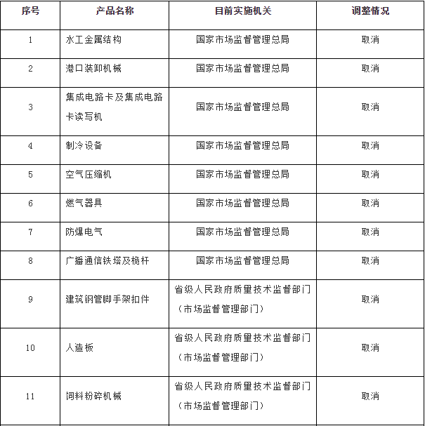 去年2018年9月末,國務(wù)院辦公廳曾發(fā)布《國務(wù)院關(guān)于進(jìn)一步壓減工業(yè)產(chǎn)品生產(chǎn)許可證管理目錄和簡化審批程序的決定》并公布了《工業(yè)產(chǎn)品生產(chǎn)許可證取消、下放管理權(quán)限的產(chǎn)品目錄》和《調(diào)整后繼續(xù)實(shí)施工業(yè)產(chǎn)品生產(chǎn)許可證管理的產(chǎn)品目錄》。