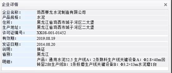 據(jù)業(yè)內(nèi)人士介紹,用于出讓的兩條熟料生產(chǎn)線在2016年已關(guān)停拆除,近期黑龍江工信廳公布的生產(chǎn)線清單中也未提及這兩條熟料生產(chǎn)線。市場監(jiān)管總局生產(chǎn)許可辦公室數(shù)據(jù)顯示生產(chǎn)地址位于黑龍江雞西市城子河區(qū)二太堡的兩條熟料生產(chǎn)線生產(chǎn)許可證發(fā)證日期為2014年8月20日,有效期至2019年8月19日。