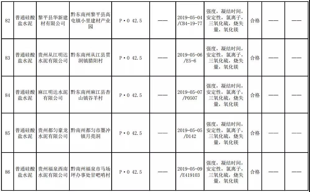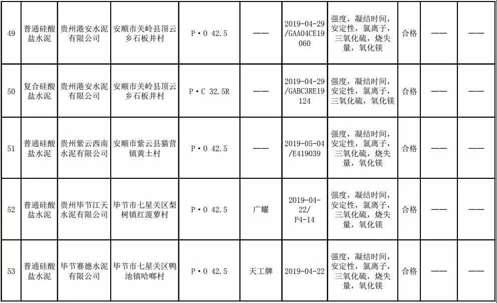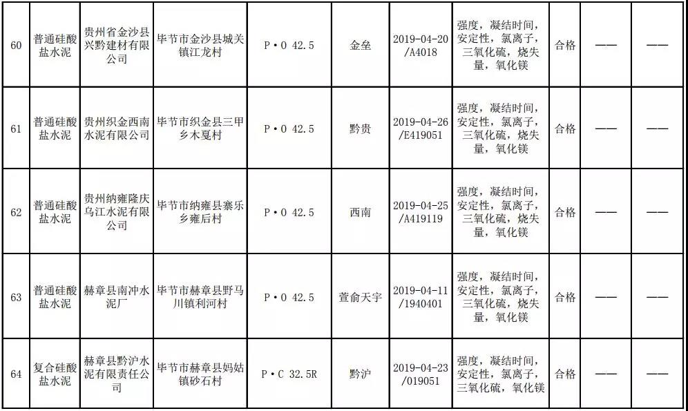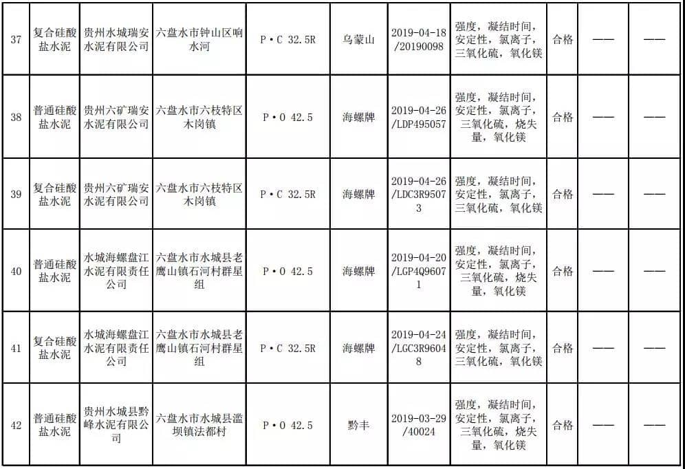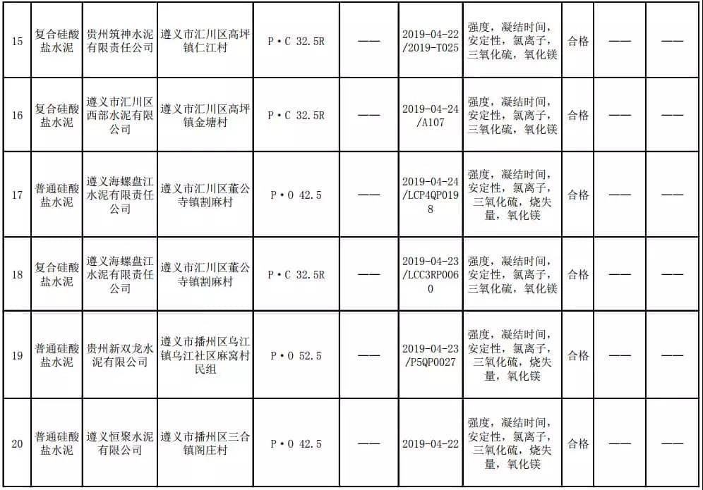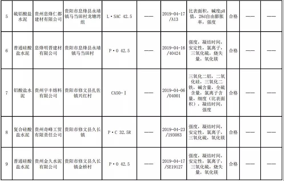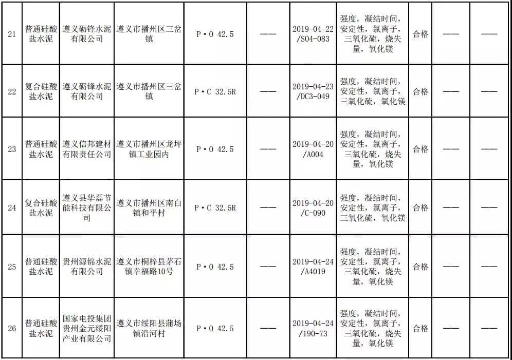 2019年8月13日,貴州省市場監(jiān)督管理局網(wǎng)站公布2019年水泥產(chǎn)品質(zhì)量監(jiān)督抽查結(jié)果。本次監(jiān)督抽查共抽查90家企業(yè)生產(chǎn)的112批次產(chǎn)品,抽查區(qū)域涉及貴陽市、遵義市、六盤水市、安順市、畢節(jié)市、銅仁市、黔東南州、黔南州、黔西南州,產(chǎn)品檢驗(yàn)結(jié)果均為合格,問題產(chǎn)品檢出率為0%,問題企業(yè)發(fā)現(xiàn)率為0%。
