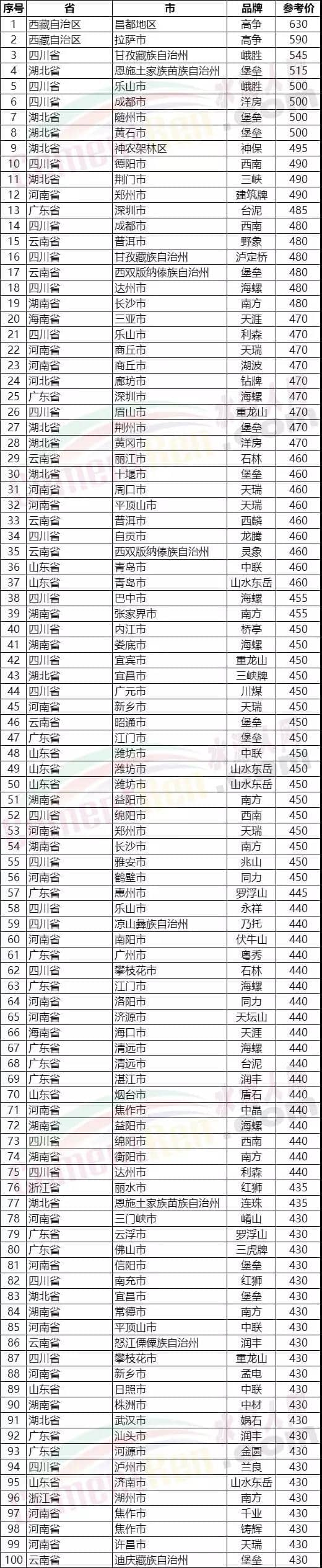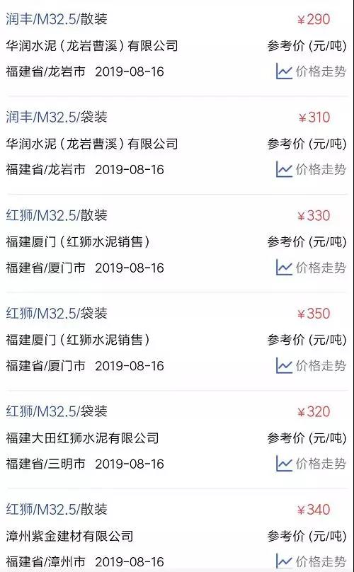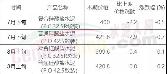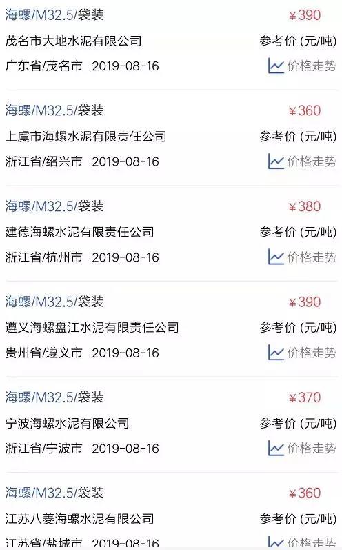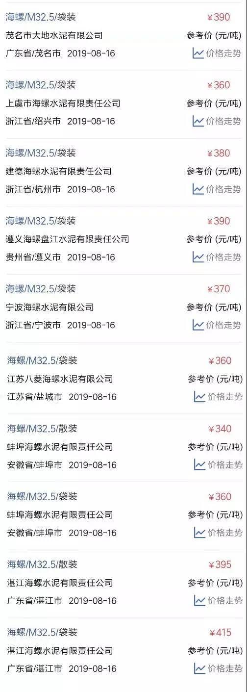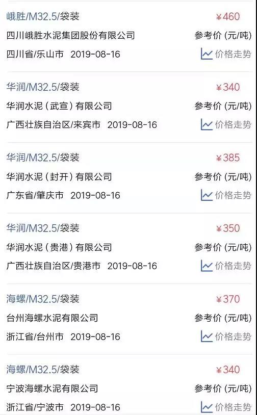 水泥人網(wǎng)信息中心PC32.5R水泥參考價(jià)(時(shí)間:2019年8月16日)