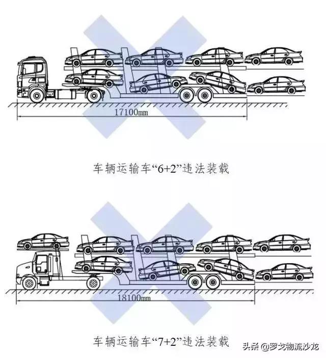 交通運(yùn)輸部:嚴(yán)查超限超載,一年超限3次吊銷營(yíng)運(yùn)證車輛運(yùn)輸車“6+2”“7+2”違法裝載示意圖