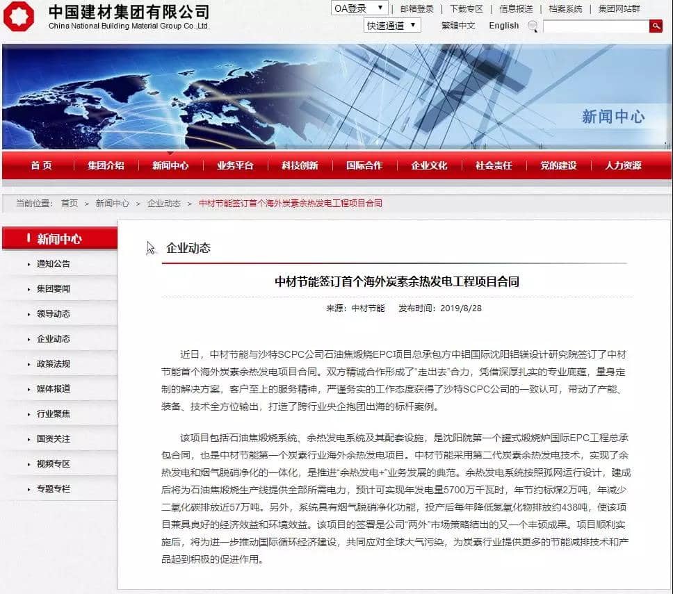 中材節(jié)能簽訂首個海外炭素余熱發(fā)電工程合同和巴基斯坦余熱發(fā)電工程合同